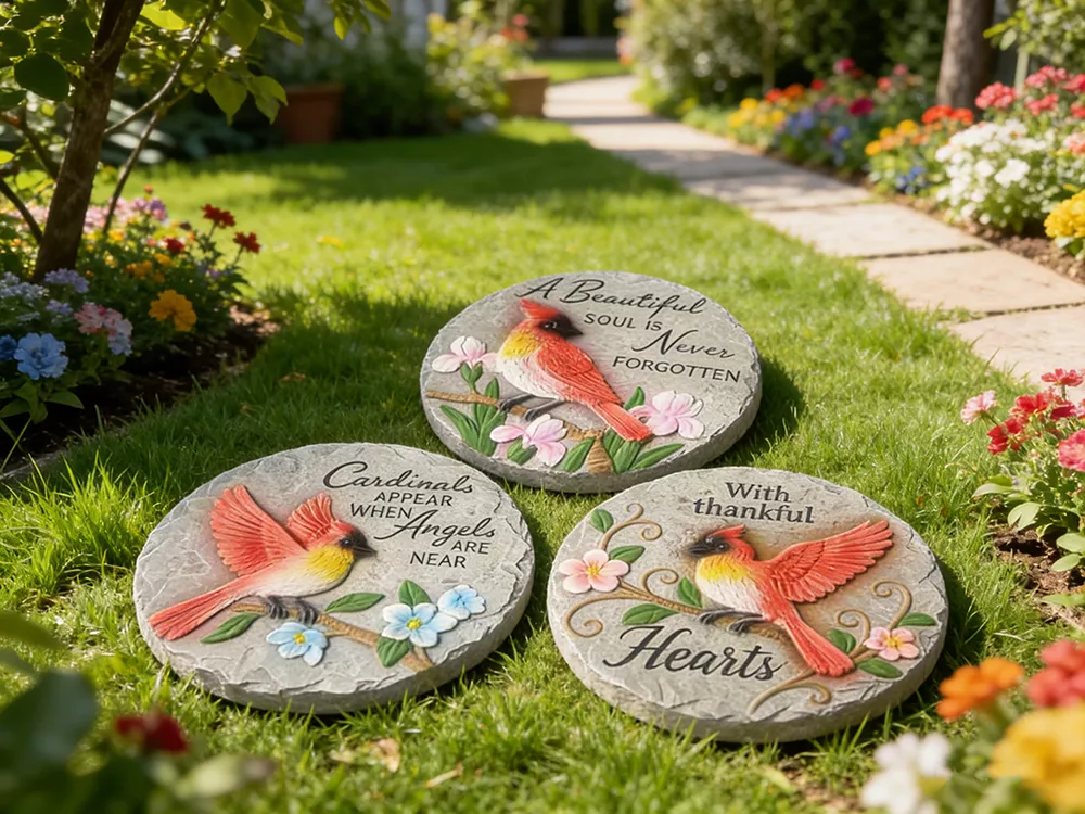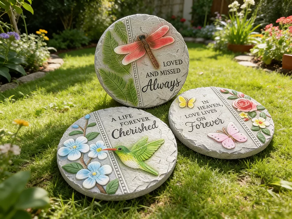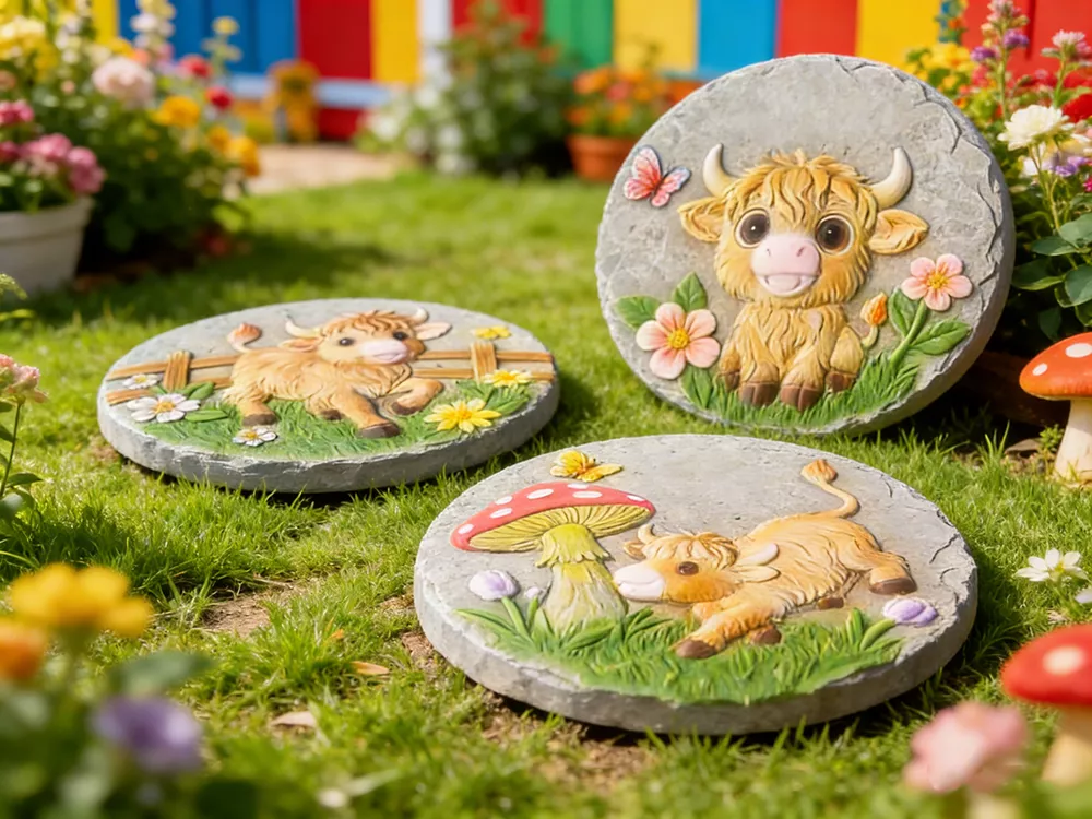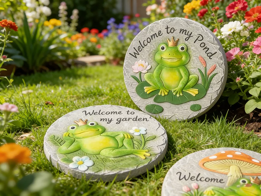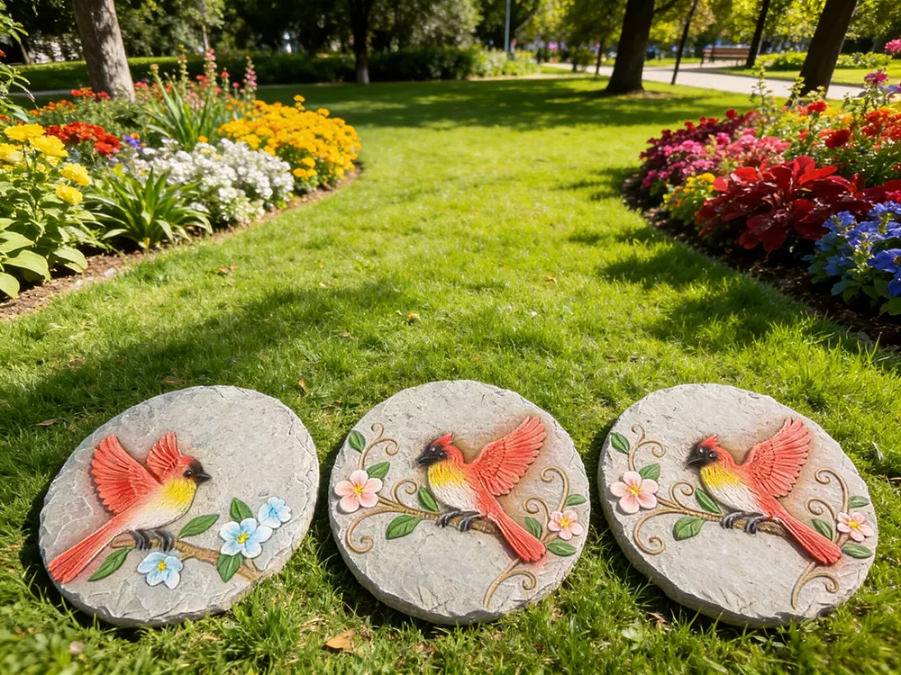 10" Large Cement Round Garden Pedals with Hand-painting Decor
