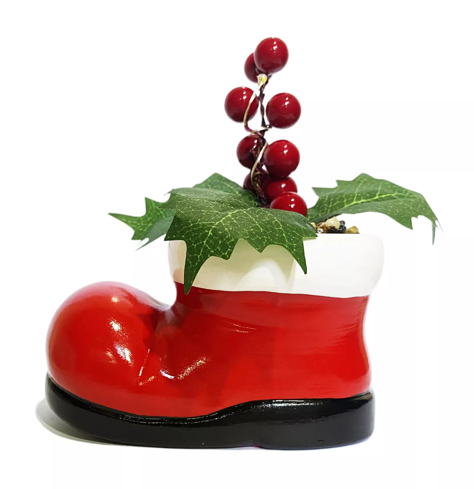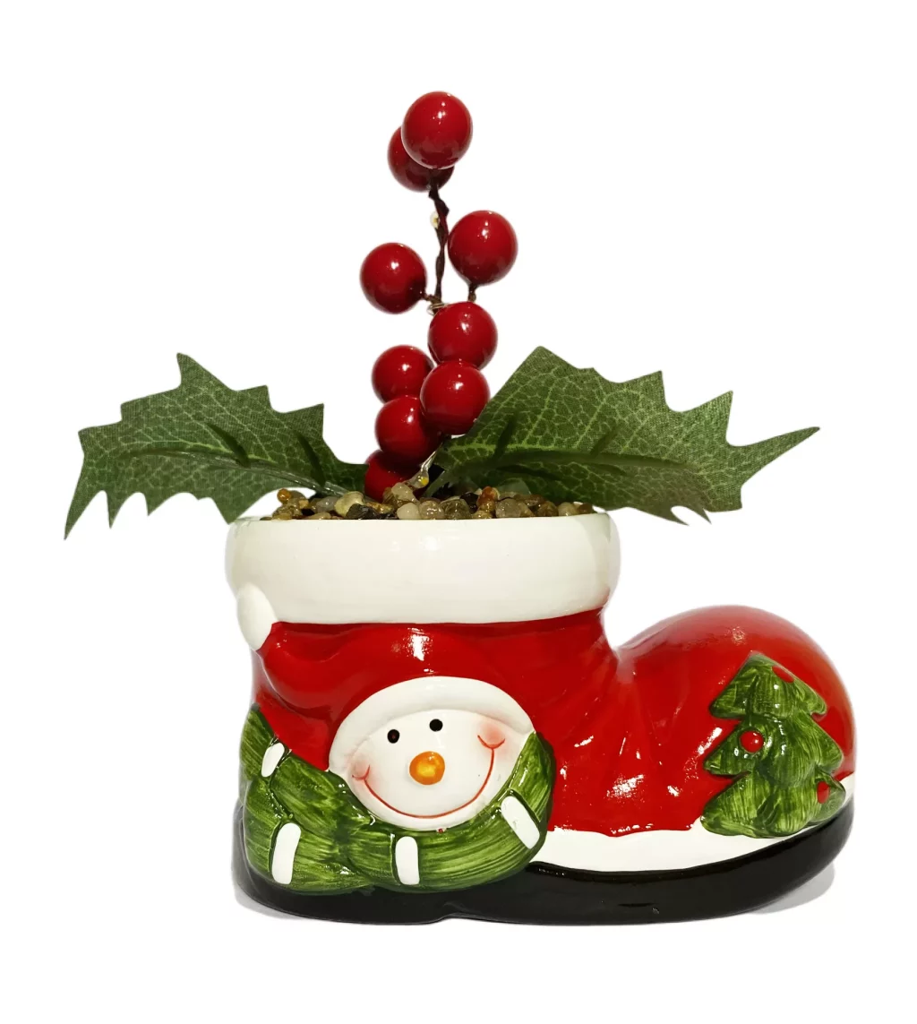 Hand-painted Terracotta Christmas Booth Shape Pot plant Artificial Flower for Holiday Gifts and Decoration
