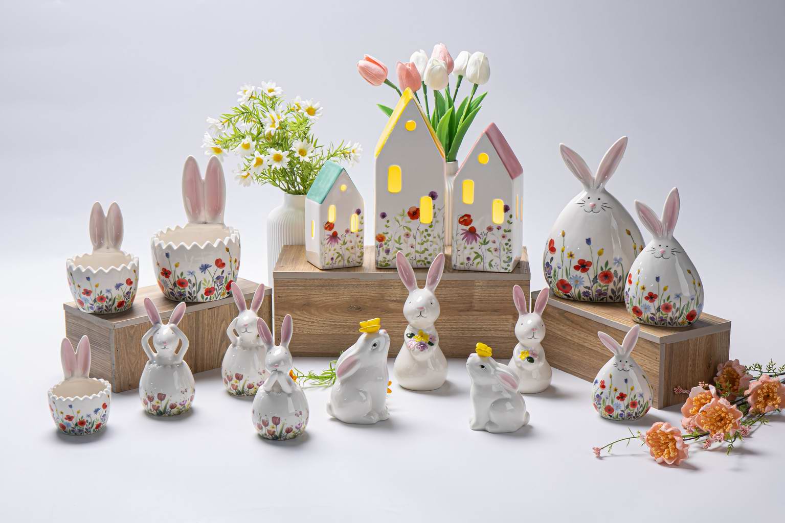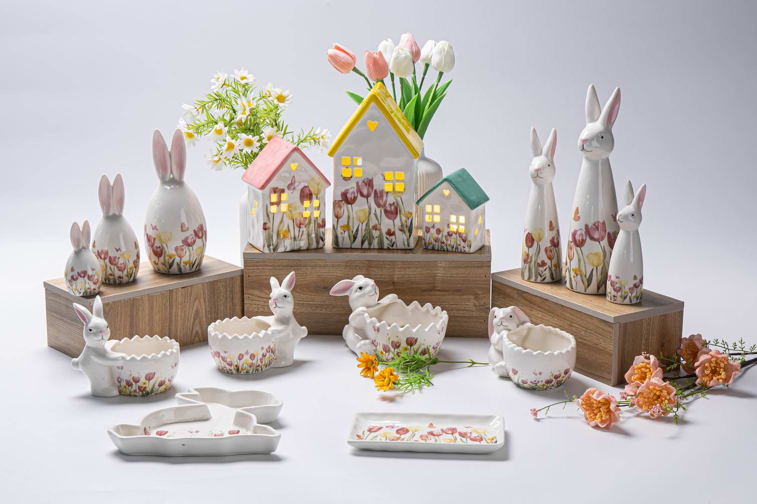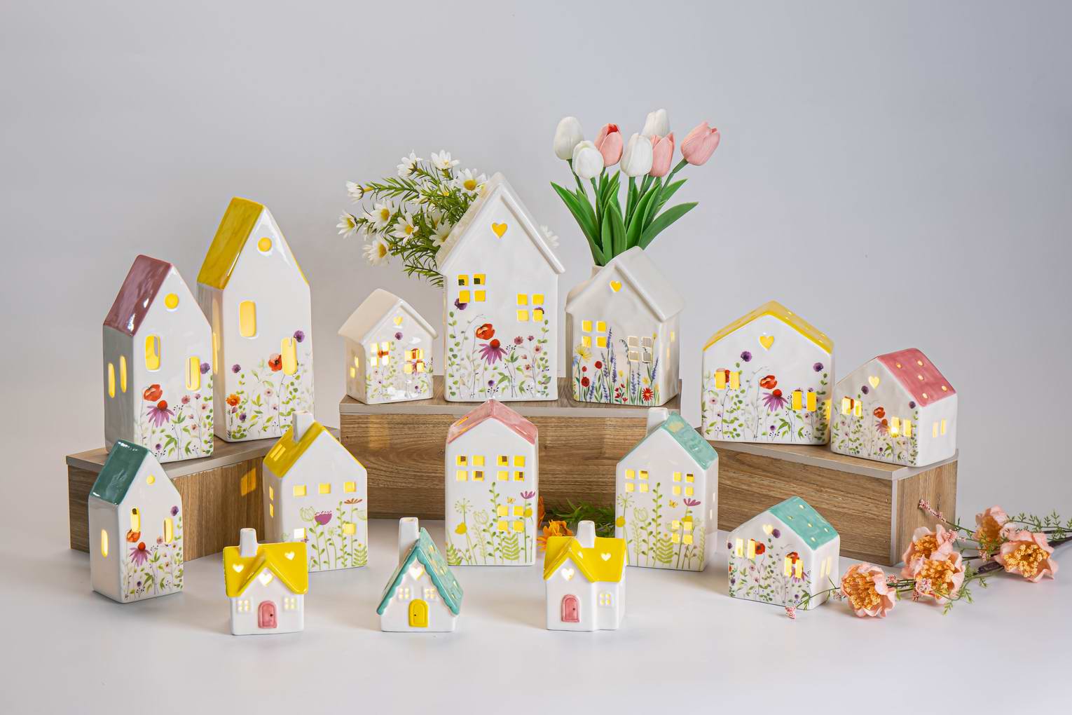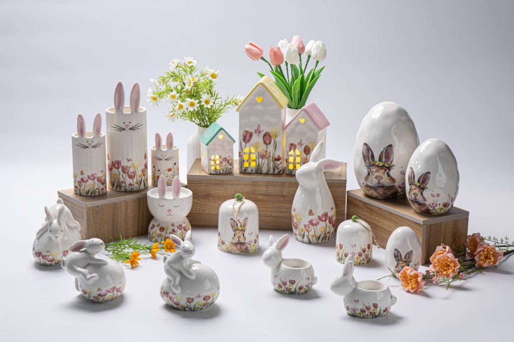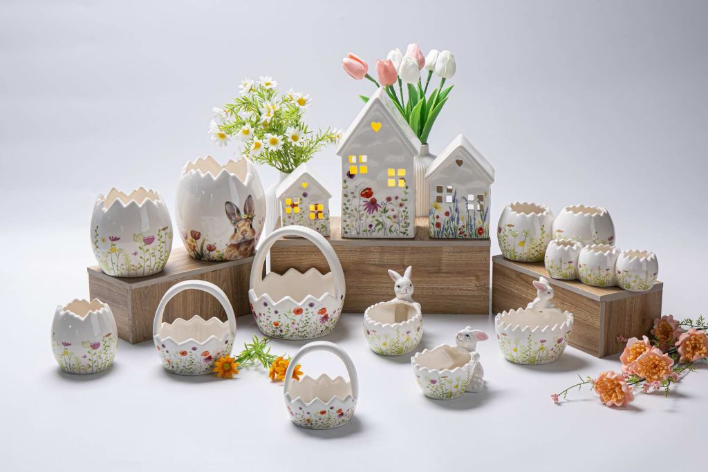 Spring and Easterday Decoration Ceramic House Model with Florial Decal and Hand-painting