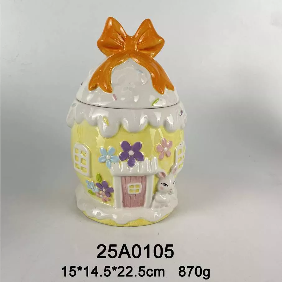 Bowknot Lid Spring Easterday Rabbit Design Ceramic Candy Jar