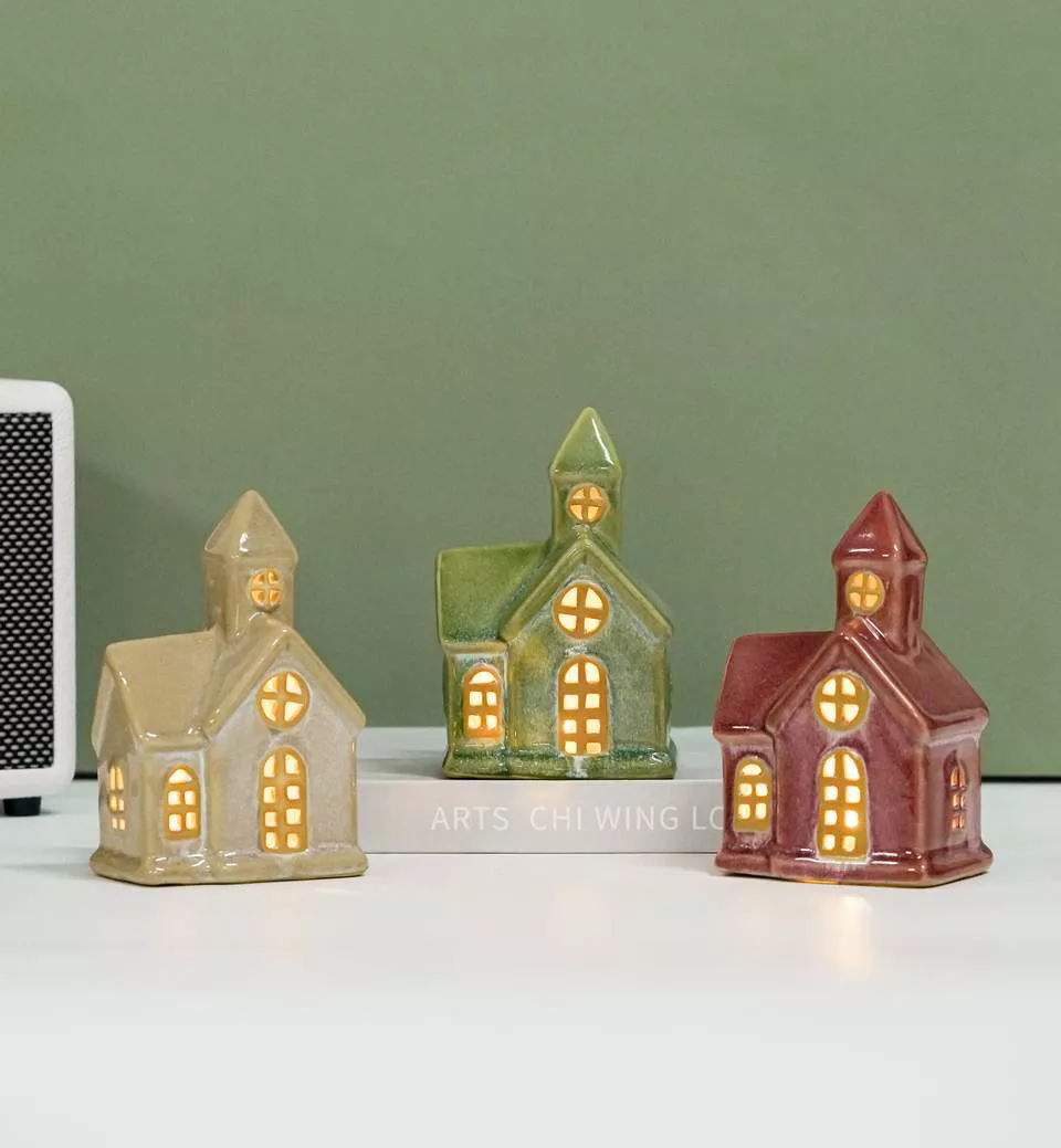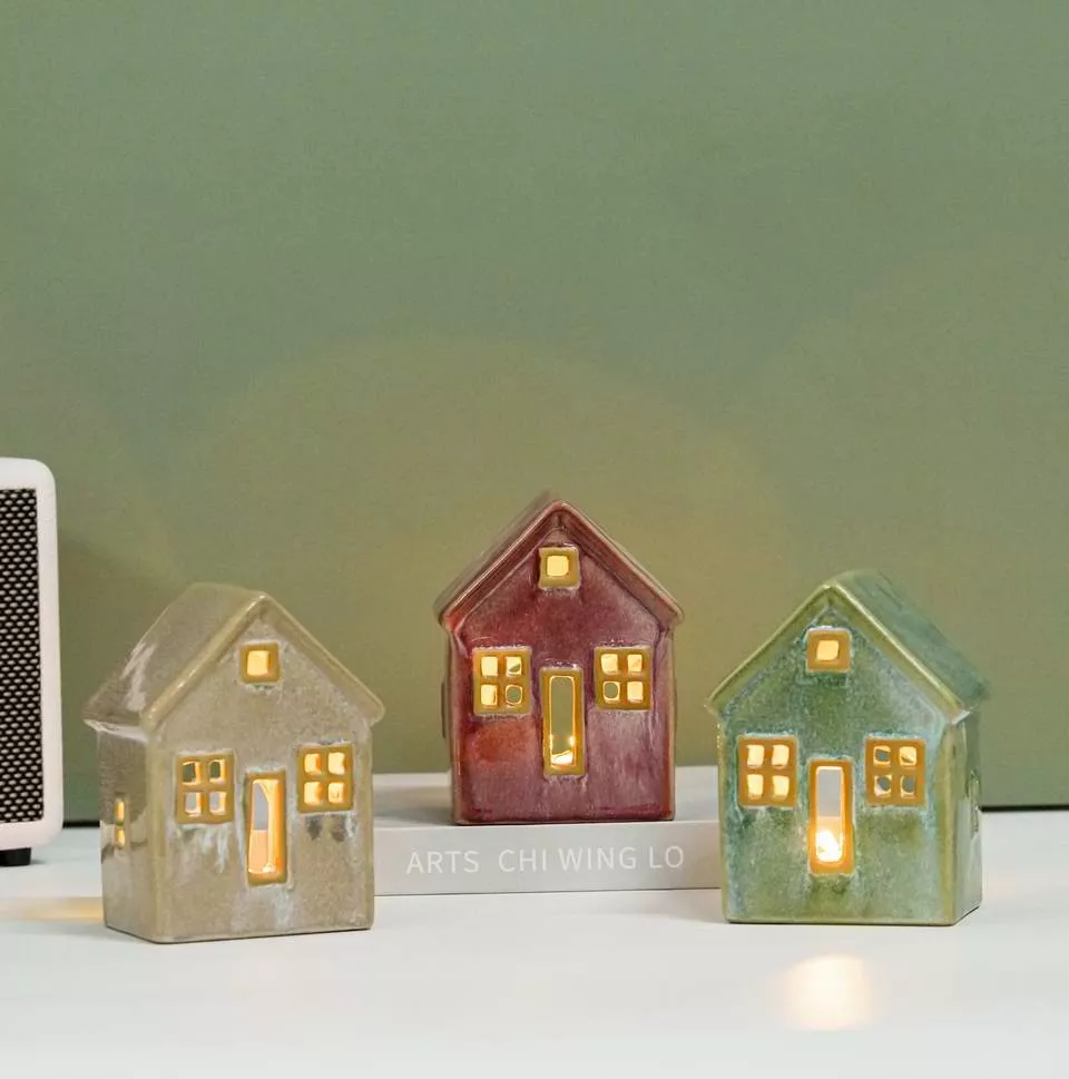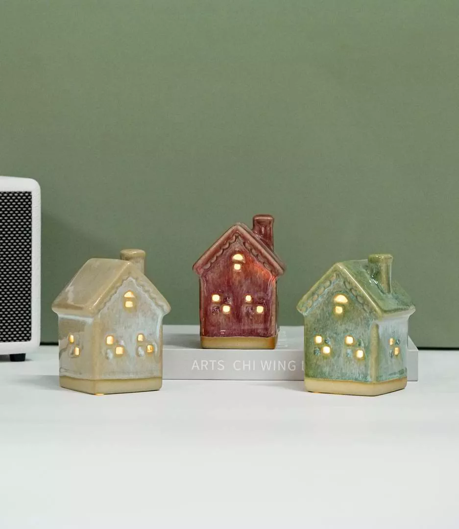 2022 new design Christmas Decoration Ceramic LED Light House with Battery Operated Warm Decorative Village Home Party