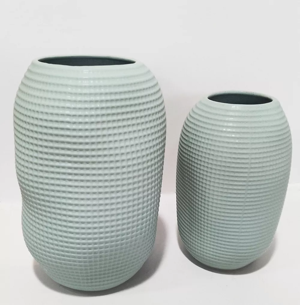 New Arrival Custom Multicolored Ceramic Tabletop Vase Goblet Shaped Sandy Touch With Groove Engraving Design for Home Decoration