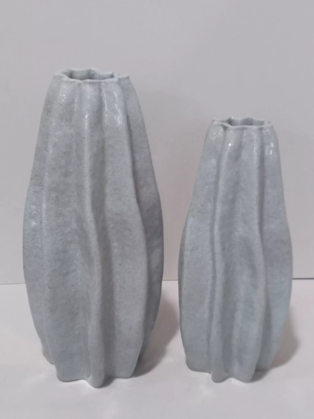 New Arrival Custom Multicolored Ceramic Tabletop Vase Goblet Shaped Sandy Touch With Groove Engraving Design for Home Decoration